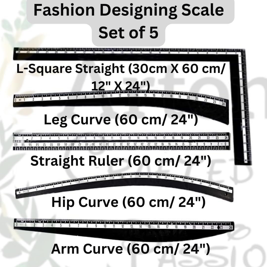 - This Drafting Material Kit for Fashion Designers includes Tailor’s Square or L-Square Straight (30cm X 60 cm/ 12″ X 24″), Arm Curve (60 cm/ 24″), HipCurve (60 cm/ 24″), Straight Ruler (60 cm/ 24″), Leg Curve (60 cm/ 24″), 1 French Single Curve, 1 Armhole Curve with Marking, 2 Triangle Curves, 1 Black Designer curve with marking (0 to 41 cm), 1 Measuring tape, 1 Seam ripper Stitch Opener, 1 Trimmer/ Thread Cutter for Sewing, 1 Tailor’s Marker Pen/ Fabric Marker, 1 Automatic Thread Inserter Tool .